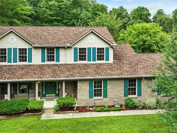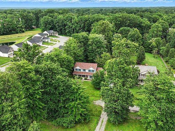 Tucked away on a wooded, nearly 3/4-acre lot at the end of a quiet street, this 4-bedroom, 2.5 bath home offers space, privacy, and classic charm. A wide front porch welcomes you in, and the back patio is perfect for enjoying nature. Inside, vaulted ceilings in the family room create an airy feel, while the country-style kitchen features oak cabinetry, tile backsplash, and stainless steel appliances. Formal dining and living rooms offer flexible living and entertaining space.