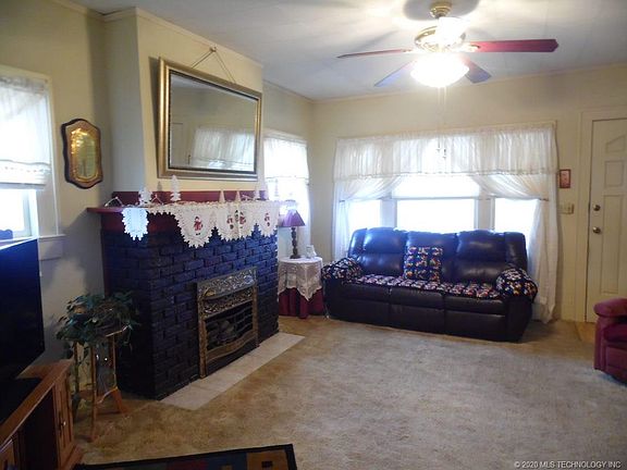 Super cute home w/tons of original character! Lots of natural lighting. Crown molding & baseboards, clawfoot tub, original interior door knobs, built-in drawers & storage w/old fashioned fasteners, mahogany kitchen cabinets, 9+ ft ceilings, glassed-in porch, beautiful gas fireplace, wide front porch swing. New roof & dishwasher, newer hot water. Garage--2 workrooms, loft, shelving. Covered back porch w/ramp. Plum & Nectarine trees.
