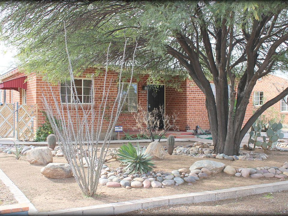 NEW ROOF on this home and we are back on the market! Seller will accept or counter offers between 148Kand 155K. Nicely landscaped property with brick home a block away from the UofA Mountain Bike Path and Cat Tran pickup! Large lot with alley access (additional yard space behind back fence; yard could be enlarged). Storage shed in back yard conveys. Off street parking in front AND back. Stained concrete floors and custom blinds throughout. Cold A/C. This home is in a great location in highly desired Jefferson Park. Hurry!
