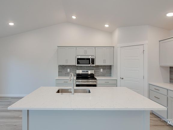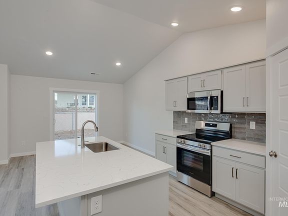 Get $30K now thru 3/31 with the Early Spring bonus! Turning the key and opening the door will be a pleasure every day in the Palisades 1722, a brand new single level home in Meridian, Idaho! The entryway wows with 9-foot ceilings the moment you step inside. Three of the four bedrooms are snuggled in the corner to the left of the entrance with quick access to a full bathroom. Straight through the entrance will lead you to the open concept kitchen, living room, and dining room. The kitchen is sure to entice any cooking enthusiast to try their culinary skills at the spacious island with its solid surface countertops and stainless steel appliances. The primary suite is tucked away at the rear of the home and offers the promise of rest, relaxation, and solitude. Photos are of actual home!