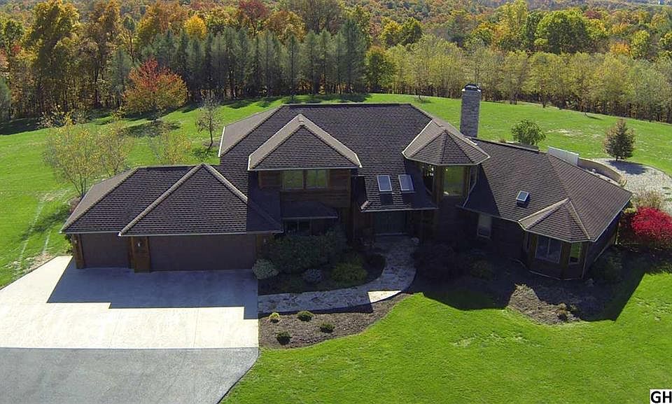 Retreat to this 70+/- acre private estate with panoramic mountain top views just minutes from Carlisle and Harrisburg. The architectural focal point is the 6,000 sq. ft. custom cedar home. The property boasts a 3 stall horse barn, a 66' X 197' riding ring, ample pastures, an oversized/heated 4 bay garage, ample woods for hunting or observing nature and a PA approved air strip with hanger for your ultra-light or Light Sport aircraft. Stocked fish pond.