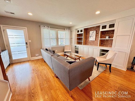 Welcome to 1334 Queen Street. This beautiful Trinidad rowhome has been completely remodeled throughout and is just awaiting your personal touches. You'll fall in love with the luxurious primary bedroom, amazing rear deck, plus off-street parking for two cars. Welcome home! Home Features: Inviting front patio overlooking quiet Queen Street Beautiful hardwood flooring throughout Light-filled living room with exposed brick and great custom built-ins Separate dining area with space for a large table Kitchen with granite countertops, island w/ bar seating and stainless steel appliances A true backyard oasis with a built-in grill and deck w/ pergola Powder room on main level Upstairs leads to the spacious primary bedroom with a custom built-in closet Second and third bedrooms on upper level Stunning full bathroom in hallway with a huge, walk-in shower Lower level in-law suite is almost its own apartment with a full bathroom, murphy bed, kitchenette and separate entrance Two sets of washer/dryers, one upstairs and one in basement Utilities: Tenants are responsible for all utilities (gas, water and electric) Parking: One off-street parking space behind home included in rent. Lease Terms: Available June 5th. Minimum 12 month lease. Application fee is $35 and includes a credit check. Security deposit equal to one month's rent due upon lease signing. Cats are ok. A small dog (under 35 lbs) would be accepted with an additional $100/month pet fee. Location: Queen Street is a quiet, residential block convenient to everything you could need for city living. Two blocks away from both the Trinidad Rec Center and the Joseph Cole Community Center. Walking distance to all of the great restaurants/shops at Union Market and on the H Street Corridor. Close to both Whole Foods and Trader Joes for your grocery shopping. The DC Streetcar that runs along H Street is also free and provides easy access to Union Station.