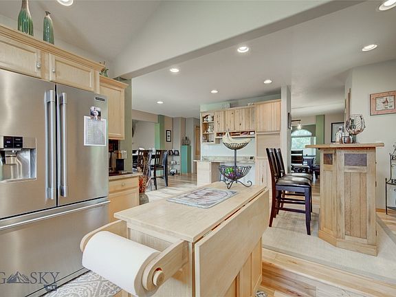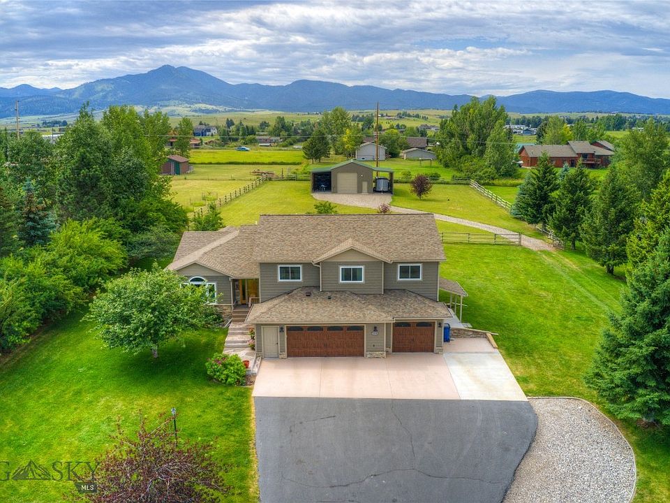 Searching for your piece of paradise with elbow room and a shop, yet close to everything that Bozeman has to offer? This gem is the one you've been waiting for! Set on 1.2 acre, this immaculately maintained home shows pride of ownership from the minute you arrive! Boasting over 3200 square feet, this home is full of character. The main level offers solid hickory floors, a formal living area, extra large dining room, a newer kitchen with a desk area, bar area, and upgraded appliances, and a large family room. Up a half flight of stairs are 4 bedrooms -- 3 guest rooms with solid core wood doors and large closets, a full bathroom with double vanity, and the extremely roomy primary bedroom suite -- complete with a walk in closet and updated bathroom with double vanity sinks and a large walk-in tiled shower! The lower level houses a large family room, bathroom, the laundry room, and leads to the oversized and heated 3-car garage -- large enough to hold a pickup at 23'7" deep and 8' doors! Stay cozy in the winter with the radiant in-floor heat system, and cool in the summer with two AC units -- one on the main level, and one in the primary bedroom. Walk outside to the newer, large deck, which features Trex decking and a covered area with recessed lighting and a hot tub! Step down to the gorgeous patio with a wood fire pit, then out to the manicured yard with mature trees and underground sprinklers, and take in the gorgeous 360 degree mountain views! The back half of the acreage is fenced for your furry friends, and has room for your toys in the 24x30 shop with a storage loft, concrete floor and two 12x30 lean-tos (one with concrete floor). All of this only a few minutes to easy access to all parts of Bozeman via I-90, and close to the hospital and MSU via Kagy. And did we mention the views? You'll love the 360 degree mountain views -- especially the up-close views of the Bridgers! Besides those already mentioned, other updates include siding, triple pane windows, roof, water heater, well pump, and water softener -- making this home turn-key and ready to enjoy!