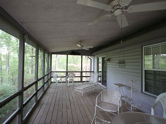 Furnished rental in Connestee Falls. House is at the end of a cul-de-sac. Mostly open floor plan with a single partial wall separating the living room from the kitchen. Master bedroom has a king sized bed and plenty of room. Second bedroom has a twin trundle bed. Large screened back porch with wooded view. Mostly level driveway with 1 car garage. Garage has a half bath. Washer & Dryer included. Gas range stove. No Pets.