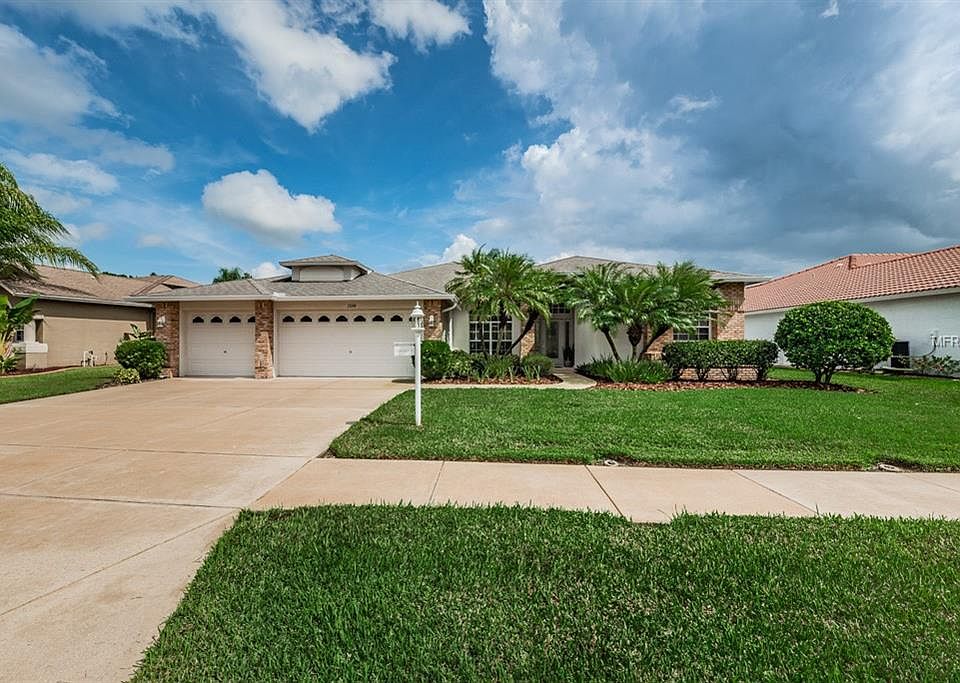 Overlooking a shimmering pond and spectacular conservation views, this stunning 3 bedroom/2 bath home with a 3-car oversized garage is nestled on an almost ?? acre lot near the end of a cul-de-sac. For a grand entrance, the stained-glass double doors and beautiful transom window let natural light in to the tiled foyer with vaulted ceiling. From the picture window in the dining room you'll enjoy open vistas to the formal living room and exquisite scenery beyond. The family room is not only spacious, the wall of sliders to the lanai and large window also reveal the magnificent backdrop. The adjacent kitchen is sleek and chic. Boasting stainless steel appliances, granite countertops, a double sink, ambient and over-cabinet lighting, and a casual dining bar, an aquarium window overlooking the lanai frames the picture-perfect breakfast nook. Besides the panorama of the great outdoors, the oversized, resort-style lanai is a dream; an oasis made complete with an outdoor kitchen. With the ideal privacy of a split bedroom floor plan, the master suite is superbly designed, showcasing sliders to the lanai and a lovely dressing area that introduces the master bath highlighted by elegant fixtures and finishes, a glass-block accented shower room, luxurious soaking tub, and a handy linen closet. Heritage Springs is an amenity-rich community featuring a fabulous clubhouse with a veranda that faces the sparkling pool, an 18-hole golf course and pro shop, fitness room, picnic areas and pathways, and tennis and bocce courts.