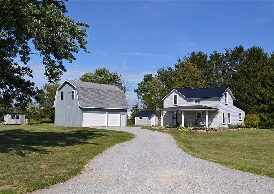 Super nice updated farmhouse on beautiful country setting in German Township! 3+ car garage with fully floored 2nd level great for workshop or storage! Storage barn as well as a chicken coop. 3 bedrooms, 1 1/2 baths. First floor master with full bath plus first floor laundry. Engineered Handscraped Hickory Floors, Newer metal roof, and newer A/C. Must see!