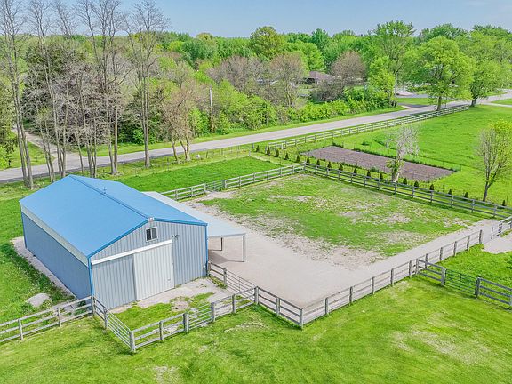 5 ACRE PRIVATE HORSE PROPERTY; HOME, HORSE BARN, TWO OUTBUILDINGS AND HAY FIELD ON NATURAL GAS - ZONED A-1. This affordable farmette offers something for all. RANCH HOME is 1248 Sq Ft and features 3 BR, 1 BA and an attached 2-car garage on the main level. There are Vaulted Ceilings in the Living Room, Kitchen and Dining areas, 2 Fireplaces and a Sliding Glass Door leads out the back to the brick paver patio. FULL BASEMENT is PARTIALLY FINISHED with a Family Room, 1 Bedroom and 1 Bathroom; adding another 500 sq ft of living space. The other half serves for laundry and storage, but could also be finished. There is a second set of stairs directly to the garage. TWO CLEARY POLE BUILDINGS: The WORKSHOP / EQUIPMENT SHED is 30 x 60 with electric (LED's), gravel floor, overhead door and service door. The HORSE BARN is 30 x 50 with electric, water and lime flooring. There are 4 stalls (3 matted and one being used currently as a tack room), each with electrical outlets and PLENTY of extra room for additional stalls, hay or equipment storage. It's extra tall and has a hay loft over the stalls. There is also a 12 ft OVERHANG on the east side of the barn providing perfect protection from the wind and rain. It sits on a lime base that is built up from virgin ground, therefore it has excellent drainage. This area is 100 X100; it is fenced and serves as the DRY LOT. There is a large gate to this area so that trucks and trailers can pull in and turn around easily. The remaining LAND has 2 fenced pastures (3-Board Wood fencing by Shuck with electric and 4-strand electric) and a 2-acre hay field. The land should be self-supportive of the horses. There is a BRIDLE PATH around the perimeter of the property. The layout of this property functions very well; economical and efficient. Conveniently located just 15 miles from I-88 and CLOSE TO TRAILS at the following FOREST PRESERVES: Big Rock (5 miles north), Silver Springs, Hoover and Harris. NEW SINCE SELLER PURCHASED: Gutters, H2O heater (2024), Roof is 13 years old with 30 year shingles, Basement Bathroom has partial updates, Well Pressure Tank, all Appliances, Ceiling Fans, all Fencing, Electric to both barns, water to horse barn, 12' Overhang on the horse barn and limestone in the dry lot. Seller had a home inspection done and is available to review. This property sells "As-is". Seller had a home inspection done prior to listing and is available to interested parties.
