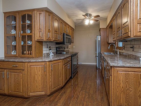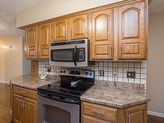 Nice house with a nice yard . New Deck . Nice quite patio, New furnace New A/C New Hot water heater . Garage is Heated . Gas fire place in basement with blower. Wet bar .