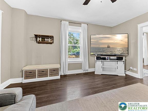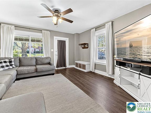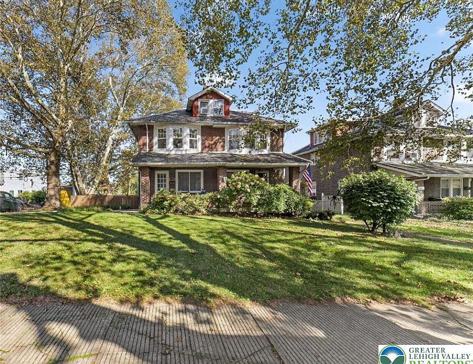 Welcome to this solid brick twin located in a great section of West Bethlehem. A covered front porch leads into a spacious, open main level featuring a large living room with a stacked-stone accent wall, followed by a dining area and an updated kitchen. The kitchen offers tons of cabinet and counter space, granite countertops, a gas stove, stainless-steel appliances, and an extended counter with stool seating for casual dining or morning coffee. A convenient half bath completes the first floor. Upstairs, you’ll find three comfortable bedrooms and a fully updated full bath featuring modern finishes and tile work. The main bedroom stands out with a bay of windows and a deep sill—an inviting spot for reading, relaxing, or enjoying the morning light. The finished third floor provides bonus space ideal for a home office, guest room, or play area. The home also includes a full basement with plenty of storage space. Outside, enjoy a fully fenced backyard and a detached two-car garage equipped with dual electric vehicle chargers. Conveniently located just minutes from schools, parks, and shopping, this West Bethlehem home offers comfort, convenience, and value in one impressive package.