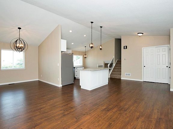 - Eating Space / Kitchen, Five Piece Bath, Kitchen Island, Updated, Window Coverings