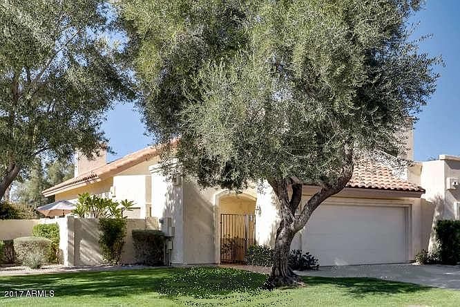 Just Reduced $10,000. Gorgeous patio home in perfect quite N Scottsdale location. Master Bedroom on ground floor with french doors to pool area and fabulously remodeled bathroom, guest bedrm up w/full bath and an extra large closet/storage area. 1st floor den w/ double doors cherry wood floor & 1/2 bath. Large bright Living/Dining Rm overlooks pool. Eat-in-kit completely remodeled with numerous pull-out drawers, pantry & beautiful farm sink. Private pebbletec pool, large side patio perfect for entertaining w/ build-in lighting & speakers. S & W windows Low E. 2CGar w/cabinets, Storage room outside. Community Heated Pool, Jacuzzi & Tennis Courts with lights are a short walk from the front door. Close to 101, Shopping, Restaurants, walking trails, schools and other amenities.