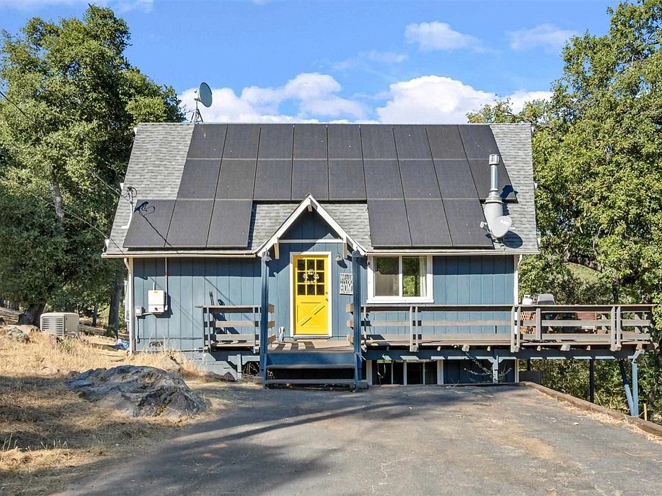 Here is the house you have been looking for! Are you wanting a great vacation rental or full-time residence, ready for the rural elements? This cute chalet-style home has Solar power and a whole-house generator. With three levels and two bedrooms, plus a loft area for either sleeping or using for games & activities, it is perfect for all your entertainment needs. The main level is an open concept, with knotty pine ceilings, kitchen and living/dining room, plus two bedrooms and a full bathroom. Tall windows give you great views of surrounding tree's and fields. The upper loft can be another great sleeping area or a hangout for games and activities. The lower level is equipped with a laundry room, full bathroom, and game room/family room where the kids can be loud. There is a great breeze that blows by each day, while you relax on the deck near your firepit, as you gaze at the stars. Regardless of how you choose to use the house, you will be sure to appreciate it and the .74 acres, giving you plenty of room for seclusion and privacy. Come take a look!