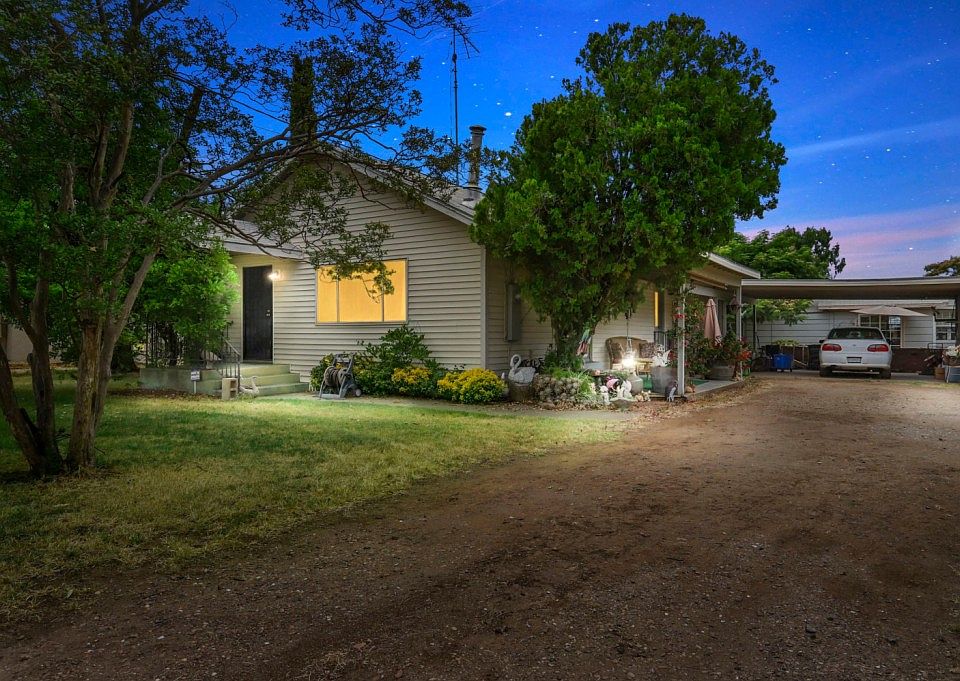 Over an acre in Lodi with two homes for under $400k! Country living within eight miles of city amenities and wine country. This 1930's rural homestead offers 3 bedrooms and 2 full bathrooms in the main house (1415 sqft), and an unfinished one bedroom second home (approx 400 sqft) plumbed for one full bath, kitchen sink, and propane range, all on 1.25 Acres. It also has full hook-ups and covered parking for your RV. Solar powered electric gate at front entry, several storage sheds, cargo container, chicken coop and lots of space for a garden or animals. Bring your imagination in creating your new country estate. This is a MUST SEE if you are looking for a little bit of country that is not too far from the city.