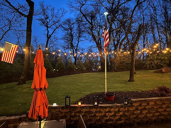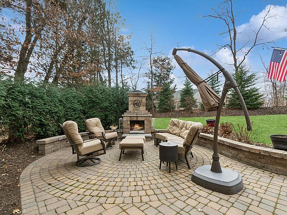 lower level paver patios, upper firepit and lower stone fireplace, extensive landscaping and lighting,