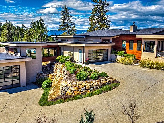 Welcome to the epitome of luxury living at the exclusive Kallanish Estates. This stunning 4780 sq/ft 6-bedroom, 4.5-bathroom home is a true masterpiece. Perched on the bluff overlooking Kalamalka Lake, the breathtaking views in every direction will leave you speechless. Just steps from your front door, you can enjoy the natural beauty of Kalamalka Provincial Park, a favorite destination for hikers and mountain bikers. This modern gem seamlessly integrates the beauty of the surrounding natural landscape with warm and contemporary architecture on a scale rarely seen. Meticulously detailed, this Custom Build residence will captivate you from the moment you step inside. The gourmet kitchen is a chef's dream, featuring full Miele Masterchef appliances, custom cabinetry, and exquisite quartz countertops throughout. The home effortlessly connects indoor and outdoor living spaces through foldable Nanawall doors and triple-pane windows, offering a seamless transition to the outdoor pool, dining area, and custom kitchen. No need to find storage for all of your toys, this home comes equipped with a massive boat/RV bay and workshop which leads directly to the main house. For those who love the water, this property boasts private lake access with 242ft of pristine lakefront, a boat slip and lift in the private 19-slip marina, and a newly built boathouse with a BBQ facilities and washrooms. Expansive decks and paddleboard storage allows you to embrace full lakefront living.