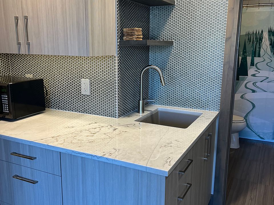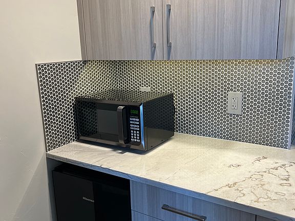 This is a thoughtfully furnished suite with a queen bed, 65" TV, a comfy sitting area, and a HUGE walk-in closet. The kitchenette features quartz countertops, an under-cabinet fridge, induction burners, and a microwave perfect for easy meals. I've stocked it with basic essentials, so all you need to bring is bedding, bath linens, and hangers.