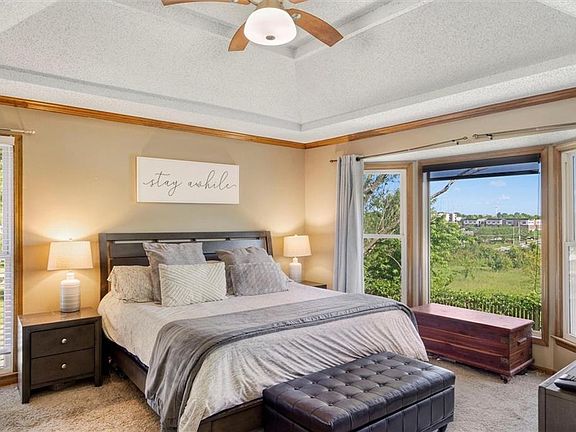 Welcome to this beautiful atrium split home on a cul-de-sac lot. The finished lower level has a walkout leading to the patio and a large fenced back yard. This home has three bedrooms on the upper floors, with a possible non-conforming fourth bedroom in the sub-basement, currently being used as a home office. The primary bedroom features a fireplace, full bath with custom stained glass, and heated flooring installed. Sellers recently replaced the air conditioning unit. Prime location close to shops and restaurants and just steps from JCCC. Don't wait - this one won't last!