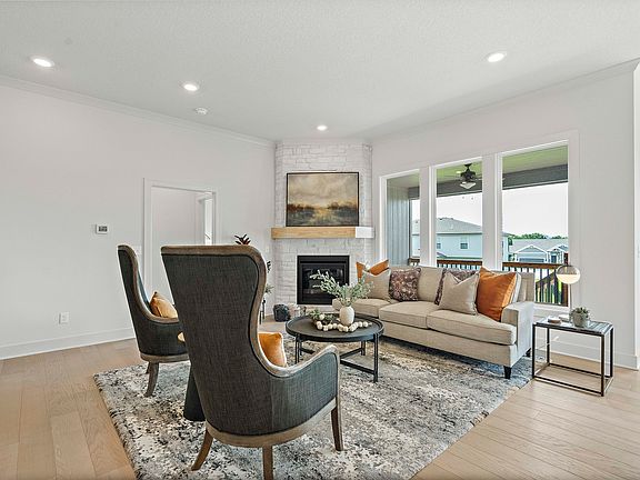 You wont want to miss this beautifully designed home with on trend designer lighting and tile! Kitchen is a Chef's dream w/ a large island, gas cooktop, wall oven, custom wood vent hood & stainless steel appliances. Gorgeous Corner Stone Fireplace, Convenient Drop zone with Built in mail center & boot bench off garage, wood floors and sprinkler system. Spacious lower level features a wall wet bar, Recreation Room, 2 bedroom with walk in closets & both have access to a full bath w/ tons of storage left over! Super efficient LED lighting & soft close drawers throughout, security system w/ 2 FREE months of monitoring!