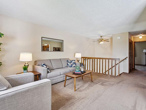 Wonderful 3 BR/2 BA Twin home with an amazing private yard that backs up to Canterbury Park. Very spacious home with 2 bedrooms upstairs and a lower level 3rd bedroom that can be used as a bedroom or a family room - depending on your needs! Spacious kitchen with newer Stainless Steel appliances, ample cabinet and counter space, and a bright eat-in kitchen space overlooking the large deck and huge backyard with a pond view. Large walk-out lower level space with beautiful tile and tons of natural light, lower level ¾ bathroom, and a spacious laundry room with solid mechanicals and a separate utility tub. Newer furnace and water heater, New A/C in 2023, New laundry tub in 2024. Huge backyard with an upper level deck and lower level patio and great privacy. Great location near parks, shopping, schools and more! Don't miss!