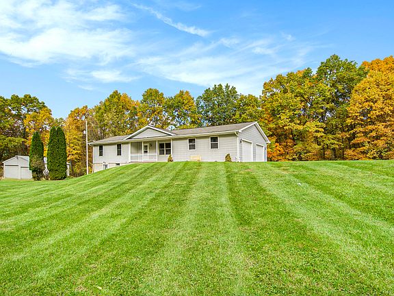 PAINTED OUT OF A PICTURE SCENE & WRAPPED IN A 10 ACRE ROLLING, WOODED BACKDROP IN THE HEART OF SOUTHWEST JACKSON COUNTY, YOU'LL FIND YOUR NEW HOME! Fall in love from the moment you step onto the large country covered porch! Move right into this 3BDRM/2BA home featuring all new on-trend flooring & paint. Desirable main floor, open concept living that carries from the kitchen & dining elcove into the living room. An abundance of natural wood cabinets line the kitchen w/a window sink offering scenic views & sharp black appliances. Enjoy the additional space in the walkout lower level-ready to finish & already includes a 2nd full bath. 200AMP. Oversized & insulated 2.5 car attached garage plus a 40x30 polebarn w/concrete floors & electric-great for hobbies & more! Pride of ownership!