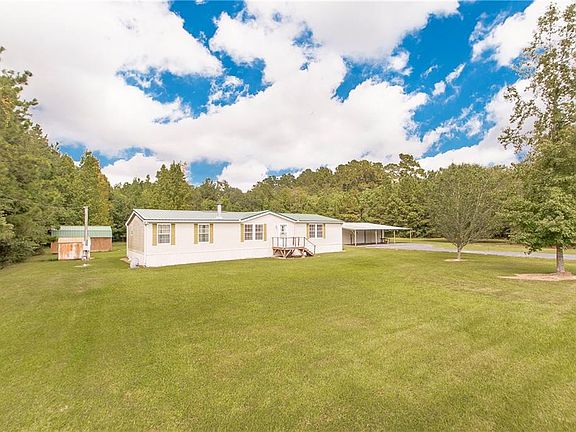 Enjoy quiet country living in this 3/2 spacious home on 6.74 acres. Vaulted ceilings throughout. Open split floor plan. Kitchen has lots of cabinets and an island. All bedrooms have over sized closets. Master bath has Jacuzzi tub, sep shower, and dbl vanity. The property has 2 sheds, a 24x45 workshop,18x30 carport, & 12x20 covered back porch. Generator to remain with the home. Come enjoy watching the deer and other wildlife from your back porch!