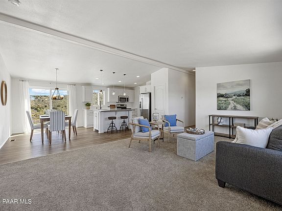 WOW! WOW! WOW! Absolutely GORGEOUS views!!! NEW CONSTRUCTION situated on 1.03 of an acre. This home offers an open concept, split floor plan, 3 bedrooms, 2 baths. The incredible kitchen has wood cabinetry, solid surfaces, stainless steel appliances ,a farm sink and A HUGE walk in pantry. The sliding glass doors provides easy access to the backyard. The spacious master bedroom has his and hers closets. The master bathroom offers separate vanities, tub ,shower, a private water closet and storage. Experience the best of both worlds. Quiet rural neighborhood yet 25 minutes away from shopping and amenities in Prescott Valley. You will fall in love with this home!!!!