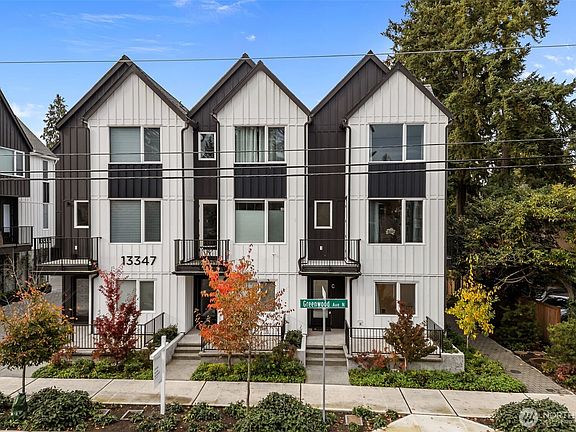 Modern luxury in a prime Seattle location! This 2 year old townhome is a sought after end-unit and features a rare 2-car attached garage. Open-concept layout filled with natural light and abundant windows. A designer kitchen impresses with a 10-ft quartz island, farmhouse sink, soft-close cabinetry, and LVP flooring. Upstairs offers a vaulted primary suite with walk-in closet and spa-style ensuite, plus two more bedrooms and laundry. Office or flex room on ground floor. Wider layout than most townhomes. Dunn Gardens, Carkeek + Green Lake Park and Bitter Lake Playfield - all nearby! Commuters will enjoy the close proximity to I-5 and downtown Seattle, respectively 2 and 10 miles from home or head to Northgate station for transit options.