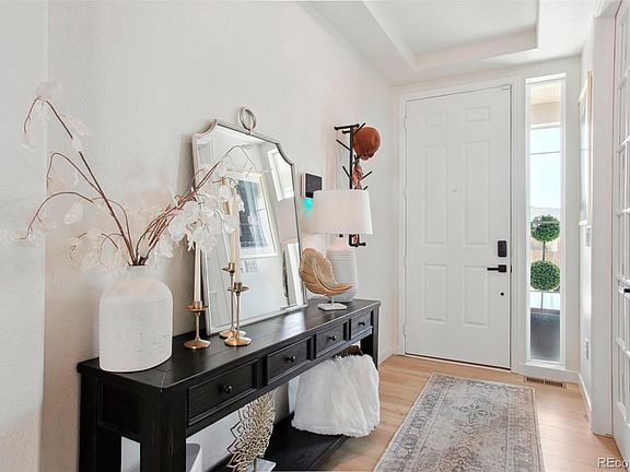 Welcome to this Beautiful Home in Amber Creek. The main and upper level include gorgeous laminate hardwood flooring throughout. Beautiful office with French doors, which allows for great workspace. The kitchen has been remolded with high-end decor and is sure to impress family and friends. The basement offers a gym, optional 5th bedroom/ or movie room, and beautiful bathroom. This home also comes with Solar Panels that you only have to pay for energy usage on. Enjoy the large yard and covered patio for gatherings and relaxation. This home has been remodeled and shows better than most model homes. Ask about a rate buy-down!! Walking distance to New King Soopers Market. This home won't last long so schedule your showing today