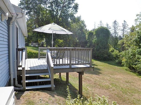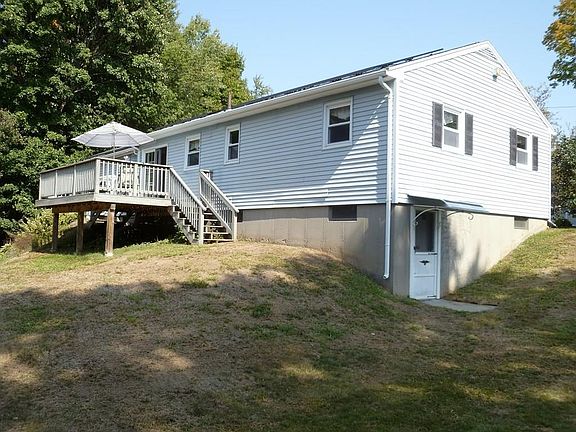 This bright and sunny 2 bedroom ranch is perfect for just starting out or downsizing. It has beautiful hardwood floors throughout. Sliders from the kitchen take you out to a wooden deck perfect for entertaining. The remodeled kitchen features granite counters and tile backsplash. The laundry is off the kitchen for your convenience. This open concept home has a large dining area open to the living room. The bathroom has a tiled walk in shower. The master is good sized, has large closets and a ceiling fan. There is a full walk out basement with plenty of room to finish for extra living space. The 2 car garage has a work bench and cabinet for storage. Solar panels help to keep the energy costs down on this home. Outside has been neatly manicured and features lovely plantings.