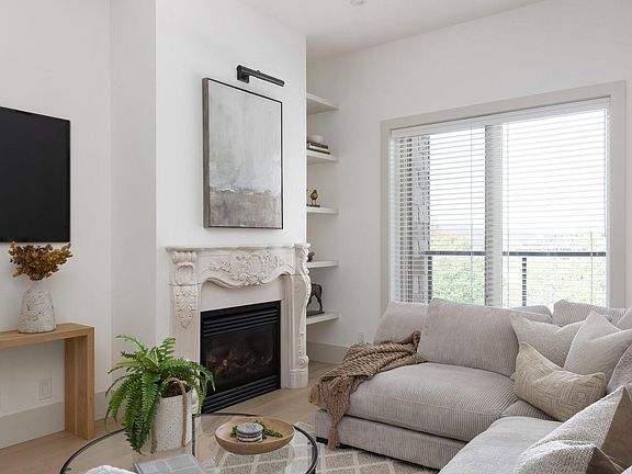 Beautifully updated top-floor residence in Ponds Landing, ideally located in the village at Bear Mountain Resort.This 2-bedroom plus den home blends modern elegance with timeless design, featuring curated finishes, designer lighting, and a soft neutral palette throughout.The airy 10-ft ceilings and open-concept layout frame a chef-inspired kitchen with a quartz waterfall island, custom wood cabinetry, farmhouse sink, and striking brass details.The inviting living room centers around a custom stone gas fireplace and opens to a covered patio with peaceful courtyard views.The primary suite offers patio access, walk-through closets, and a spa-like ensuite, while the second bedroom has a walk-in closet. The den presents a built-in desk for a flexible study or work from home space.Enjoy year-round climate control with an efficient heat pump. Complete with in-suite laundry, secure underground parking, and storage locker, just steps from world-class golf, dining, hiking, and resort amenities.