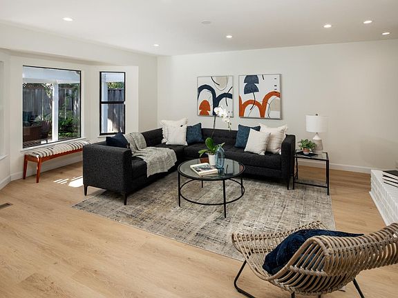 Located in Sunnyvales most sought-after neighborhood of Ortega Park, this 3 bedroom, 2 bath home has undergone a total renovation perfectly blending modern living and timeless elegance. With approximately 1,936 sq ft of living space, it offers premium finishes throughout. New luxury vinyl flooring, spacious kitchen and designer color palette. The generous living room has a wood burning fireplace and natural light exudes through the expansive windows. The updated kitchen seamlessly connects to the spacious family room and dining area. The kitchen itself offers an abundance of white shaker cabinetry, quartz countertops with complimentary backsplash and new stainless-steel appliances. The dining room has skylights and French door opening to the rear yard. Whether entertaining on the dining terrace, playing on the lawn or relaxing under the heritage oak, the yard feels like its own private oasis. All bedrooms are generous in size; primary suite offers a walk-in closet, spa-inspired bath and French door to the rear yard. Additional features include LED lighting, central heating, double pane windows, inside laundry and attached two-car garage. Just a short drive to downtown shopping, dining, farmers market, ideally situated near major tech companies and award-winning Cupertino schools.