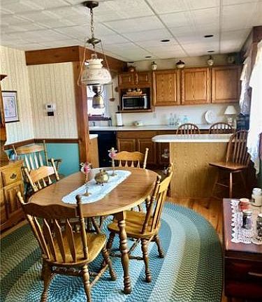 ** Welcome to Your New Home ** This Ranch-Style Property Has Been Perfectly Maintained, is Pristine AND Very Deceiving From the Outside ** Currently 2 Bedrooms; BUT, Room Usage Could Be Changed to 3 Bedrooms to Meet Family Needs ** Large Addition Added a Generous Sized Living Room w Cathedral Ceiling and Bedroom - Change Dining Room Back to Living Room, then 2 Bedrooms Become 3 ** Fully Equipped Pretty Kitchen Has So Much Counter Space and Cabinetry, Seating Around Breakfast Area - 3 Stools Included - and is Light and Bright ** Gorgeous, Huge New Bathroom Has Lots of Storage and a Stunning Walk-in Shower w Sliding Glass Doors ** Convenient 1st Floor Laundry has Great Cabinet Space ** Manicured, Private Back Yard Offers a Covered Patio and Another Paver Patio, Plus a Shed for Your Outside Tools ** Lower Level Gives You a Wide Open Clean Space to Meet Any Storage or Playspace Needs ** Updated Roof, Furnace, Central A C, Windows PLUS Home Warranty - Nothing to Do, Just Unpack Boxes and Move Right In!