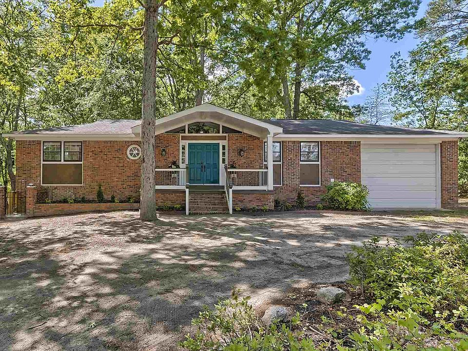 RENOVATED RANCH on 2.7 acres in West Columbia. 2,334 sq. feet. 3 bedroom 3 ½ baths with 1 car garage. Seller has touched every surface renovating the main level and finishing the bedrooms and bathroom in the walk-out basement using a cool palette of whites and grays with a touch of blue. Improvements include new carpet, new luxury vinyl plank, new counter tops, new vanities, new light fixtures, new plumbing fixtures and fresh paint. Inviting porch leads to a wide foyer that opens to large Living Room with vaulted ceiling crowned with beams. Wooded views from wall of windows draws you through the Living Room in to the bright and cheery Sunroom. Generous eat-in Kitchen is complete with a breakfast bar, Acacia wood slab counter tops accented with subway tile back splash, stainless farm-house sink and new stainless appliances including the refrigerator. Untouched view of trees in the backyard can be enjoyed from the bay window at the eat-in area. Master on the main level has a two-sink vanity and huge walk-in closet. Half bath for guests and full bath in utility room with washer and dryer are located on the main level. Sitting area with two bedrooms and new bath are located in the walk-out basement. This wonderful property is located close to shopping dining, major interstates and thoroughfares.