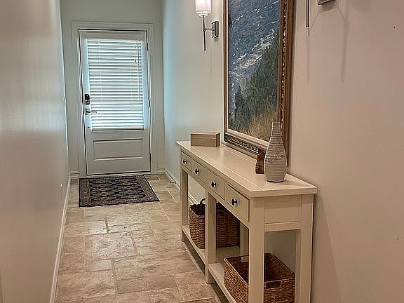 Recently updated throughout…..private elevator inside the unit. New granite, appliances, hot water heater w/water proofing in hot water heater closet, paint and carpet, 2 car garage. 1st floor, entry hall, bedroom or office with bathroom. 2nd floor living, powder bath and kitchen. Juliet balcony off living and sitting balcony with gas grill outlet attached to natural gas supply off the kitchen. 3rd story master suite with balcony, walk in closets soaking tub and stand alone shower. Laundry facilities in hallway between master and guest room. Guest room has en-suite bathroom with tub/shower combo.