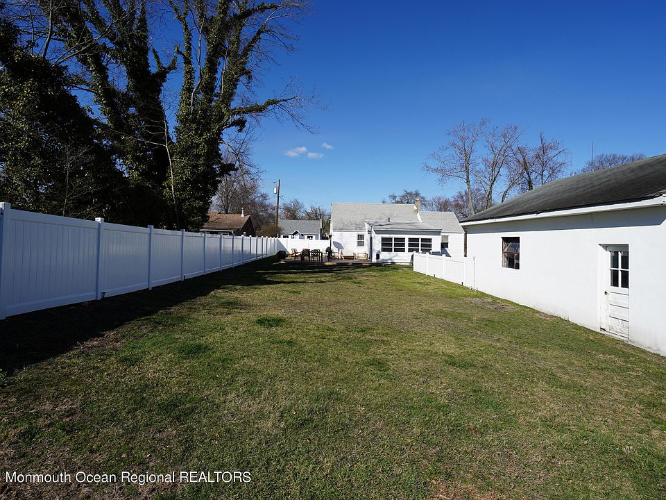 Home has a 2-car garage that owners have transformed into a man cave/she shed with large bar for year-round parties. Close to shopping and all local highways. 2 miles to the beach and large yard with plenty of room for a pool.