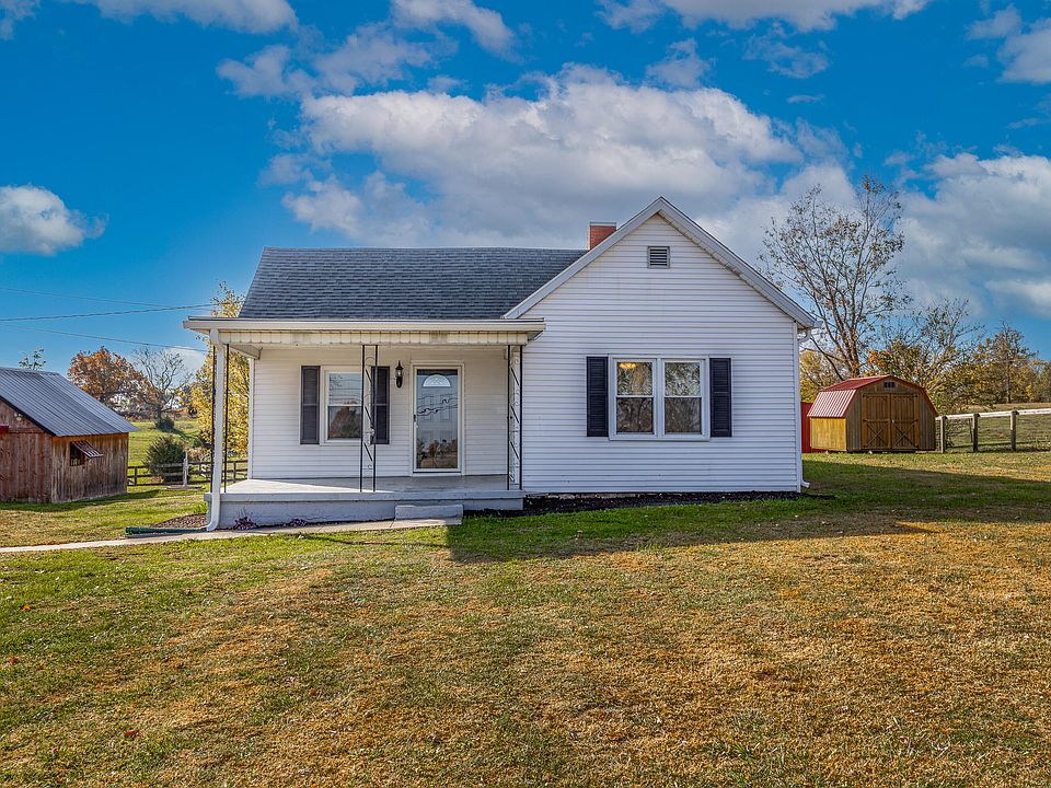 Step into this beautifully renovated ranch-style farmhouse that exudes charm and tranquility. Nestled on 2.06 acres, this 1,242 sq ft home offers three cozy bedrooms and a single, thoughtfully updated bathroom. The fresh coat of paint enhances its inviting ambiance, making it feel brand-new. The property is ideal for those who love horses, with its well-maintained fencing and paddock. A small run-in shed and barn with one stall providing additional shelter, ensuring your equine friends are well-cared for. For added convenience, there's a newer storage shed to house all your tools and equipment. Step out onto the deck and take in the picturesque views of the rolling pasture that surrounds you. The rural setting provides a peaceful retreat from the hustle and bustle of city life, while still being conveniently close to dining, shopping and entertainment options. This unique blend of seclusion and accessibility makes this property a perfect choice for those looking to enjoy the best of both worlds. Make this charming farmhouse your new home, where comfort, convenience, and country living come together seamlessly. Close access to US-127 and just a few minutes from Bluegrass Parkway.