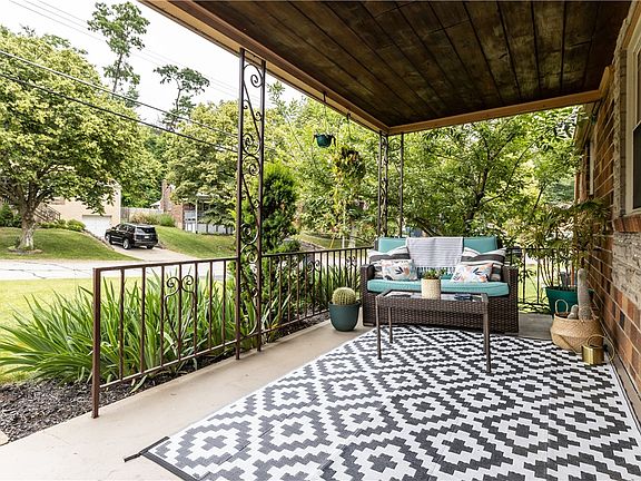 Welcome to this charming brick ranch conveniently located just minutes to downtown Pittsburgh! Hardwood flooring throughout the main level! Eat-in-kitchen with appliances staying. Natural light galore in the living room with picture window. Full bathroom with ceramic tile flooring, tile surround shower and updated vanity. Ideal outdoor living space with a covered front porch, back patio and level back yard with privacy fence! Spacious walk-out basement. Plenty of parking in the asphalt driveway and one car garage! All appliances staying! Home warranty included!