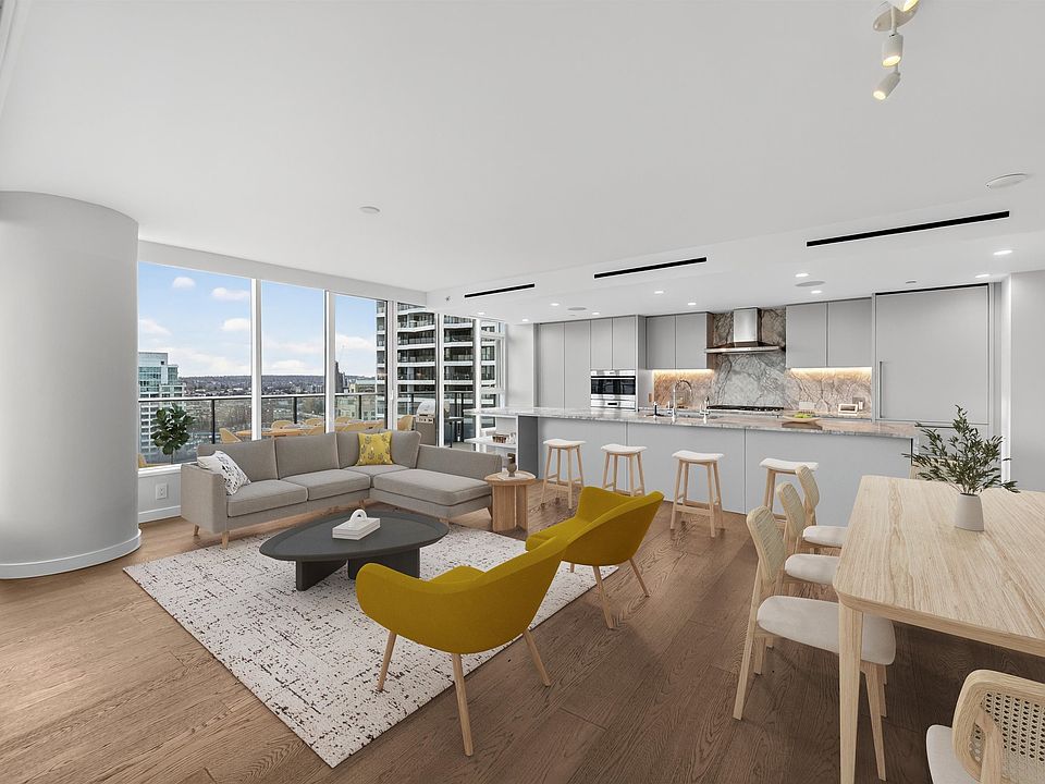South east corner suiteSmart-home systemBuilt-in speakersMotorized blindsKohler fixturesHeated flooringOn demand hot water