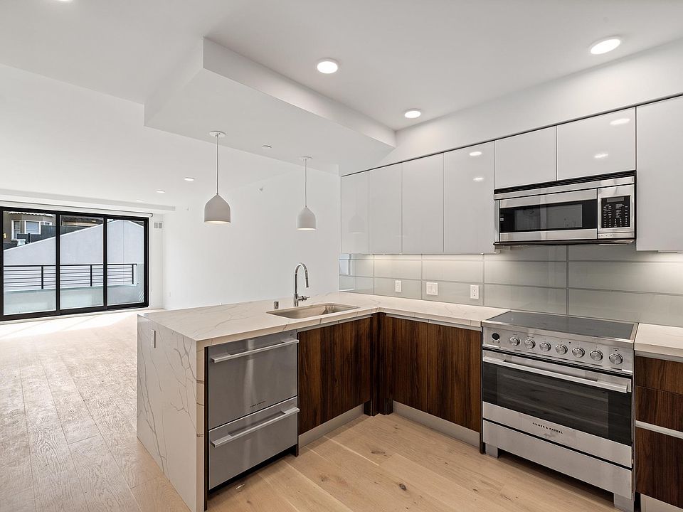 Please contact agent to schedule a showing or with any questions. Never-before lived in new construction. Available for move in mid-August. Be the first to move into this brand new building in Polk Gulch/Lower Nob. Unit 303 is a spacious 2 bedroom 2 bathroom with a private deck and neighborhood/city views. All units feature air conditioning, wide plank oak flooring, and high ceilings throughout. Modern kitchens with stone countertops and appliances by Fisher and Paykel including a range, dishwasher, refrigerator, and microwave. Common area amenities include an elevator serving all floors including the roof which features a large rooftop patio with BBQ. Bike parking available. Compact parking space in garage available for $300 /mo. additional. - $4850 /mo. rent - 1.5x rent security deposit - 1 year lease - tenant pays own electricity - webpass internet available for $50 /mo. additional - 1 pet (cat or dog) under 30 lbs. ok - Parking available for additional monthly rent Agent: Jacob Klestoff, DRE#: 01883910 Office: West & Praszker Realtors, Inc. tenant pays electricity and internet owner pays water and garbage