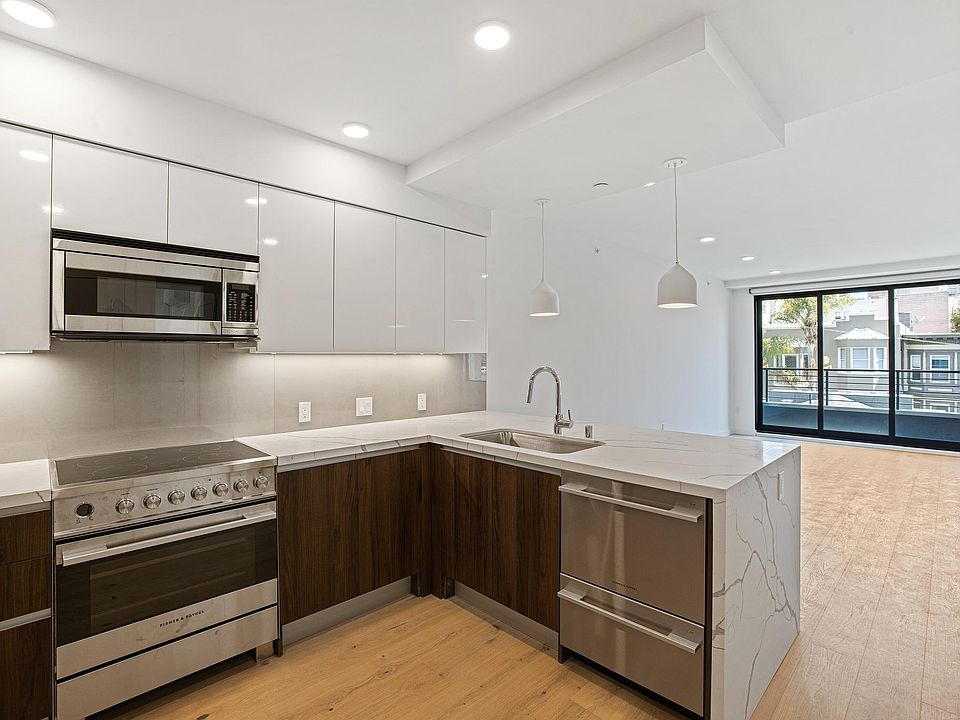 Please contact agent to schedule a showing or with any questions. Never-before lived in new construction. Available for move in mid-August. Be the first to move into this brand new building in Polk Gulch/Lower Nob. Unit 401 is a spacious 2 bedroom 2 bathroom with a private balcony and some city/neighborhood views. All units feature air conditioning, wide plank oak flooring, and high ceilings throughout. Modern kitchens with stone countertops and appliances by Fisher and Paykel including a range, dishwasher, refrigerator, and microwave. Common area amenities include an elevator serving all floors including the roof which features a large rooftop patio with BBQ. Bike parking available. Compact parking space in garage available for $300 /mo. additional. - $4650 /mo. rent - 1.5x rent security deposit - 1 year lease - tenant pays own electricity - webpass internet available for $50 /mo. additional - 1 pet (cat or dog) under 30 lbs. ok - Parking available for additional monthly rent *photos are of a different unit with a similar floor plan. views and actual dimensions may vary somewhat* Agent: Jacob Klestoff, DRE#: 01883910 Office: West & Praszker Realtors, Inc. owner pays water and garbage tenant pays electricity and internet