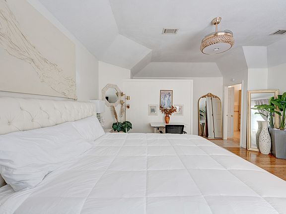 Fully furnished master suite, approximately 850 sq. ft., featuring a king bed, 60" smart TV, high-speed internet, and an adjustable desk for sitting or standing. Enjoy a jetted tub, a spacious walk-in closet, and included MINI-FRIDGE + MICROWAVE, NO KITCHEN. Each unit comes with a designated parking space and a private entrance, ensuring no shared areas. This home has been converted into a triplex, with two other professionals residing on the property. Located in a safe neighborhood in North Columbus.