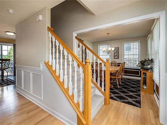 Well maintained 4 bedrm 2.5 bath home located in Cameron Estates. Attractive landscaping adds to the curb appeal. Beautiful solid hardwd flrs greet you & run throughout the main flr. Add windows installed during bldg allows an abundance of natural light in. Warm maple cabinets, SS appliances, peninsula w/ seating & plenty of counter space & storage make this eat-in-kitchen a plus w/slider out to composite deck w/ panoramic views of the surrounding area. Stairs from deck lead to the flat backyard! New gas line installed in the kitchen. Neutral décor & freshly painted. Functional open floor plan w/ large Liv Rm for relaxing & entertaining. Din Rm is ready to hold family dinners w/ wainscoting & chair rail. New carpeting on stairs, upstairs hallway & Master Bedrm. Large Master w/ chair rail, walk-in closet & en-suite. 3 add bedrms & full bath finish the 2nd floor. Finished Lower Level w/ walk-out. Oversized garage offers additional storage. Driveway resealed 2019 New Hot water tank 2018.