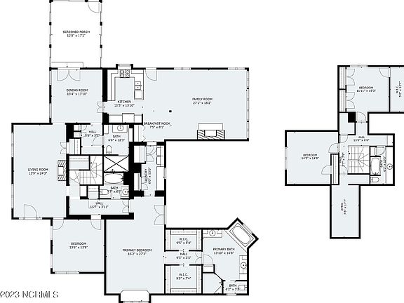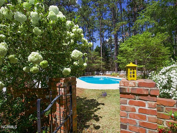 After being off the market for 35 years, one of the rare Southern Pines historic homes sitting on 2.1 acre lot is now available to make your dreams come true. The original home was built for the son of the world renowned golf course architect, Henry Fownes and features original marble floor tiles and beamed ceilings. Previous high quality renovations have brought this historic home into the 21st century with a massive Master Suite complete with direct access to a private garden, custom built window bench, large walk-in ''HIS ''and ''HERS'' closets, lofty bathroom suite with heated BUBBLE tub, large walk-in tile shower with bench, toilet closet and separate vanities with custom cabinetry. Built for modern day living, the laundry room is immediately adjacent to the Master Suite. This 4 bedroom, 4.5 bathroom house features an open plan kitchen and family room, formal dining, Carolina Room, and 2 story detached upstairs/downstairs Bonus Rooms with a bathroom and bathroom included. The 2 acre lot includes a 40 foot in ground swimming pool, established trees and gardens, a bounty of perennials and pollinator plants, an irrigation system, owners did not use any harsh chemicals ensuring an eco-friendly environment, all of which is surrounded by rear fencing making property pet safe. This charming cottage style home is nestled in a very discreet setting ensuring your privacy while being located in close proximity to downtown Southern Pines. GOLFERS - Home is within walking distance of Pine Needles Golf Resort host of multiple US Open's Women's Championships. Join Pine Needles CC and have access to 3 DONALD ROSS courses, Pine Needles, Mid Pines, and Southern Pines CC. Garage is currently a workshop but can easily be returned. Additional sq ft in the detached bonus area of 1217 sq feet. The Pool is salt water and has a heater.