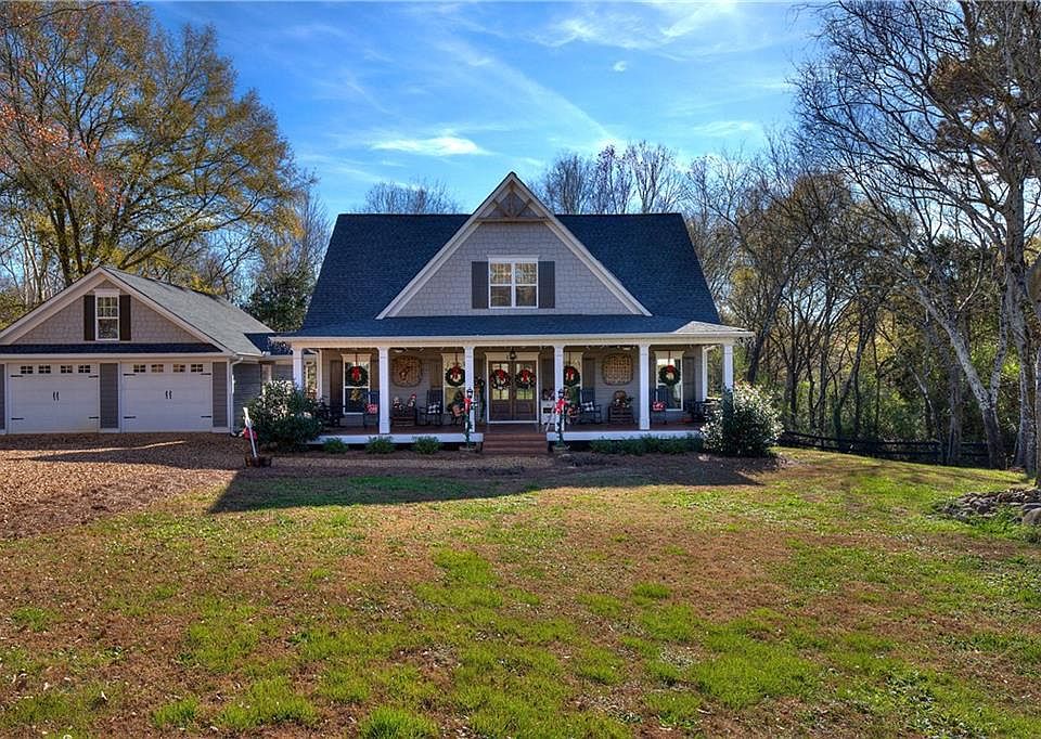 Four Bedrooms and 2.5 baths sits on 4.87 acres with lots of features. Master on Main with Master bath featuring double bowls-soaking tub-separate shower. This home is beautiful with hardwoods throughout with exception of ceramic in bathrooms. Two Laundry Rooms-one main level and one upstairs. Entertain with kitchen island and open floor plan. Lots of farmhouse features and it's stunning. Powder room for friends and guests. Office. Craft/Loft room upstairs. Screened porch. Deck. Front Porch. Fenced yard. This home has it all and more. Don't miss it.