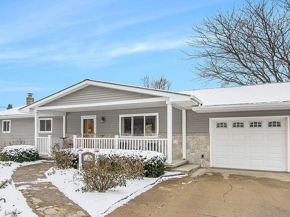 Discover the perfect blend of country charm and modern convenience in this updated 3-bedroom, 2-bath ranch home on 1.46 scenic acres. The open-concept layout seamlessly connects the kitchen, dining room, and living room, creating an inviting space for everyday living and entertaining. The kitchen boasts stainless steel appliances and a breakfast bar for casual meals. Retreat to the primary suite with its private bath featuring an updated tile shower. The main-floor laundry is thoughtfully designed with a folding table to maximize space. Fresh paint throughout adds a crisp, updated feel. The finished basement offers a versatile family room with a built-in workspace, ideal for home office or study needs. Outdoors, enjoy a fenced backyard with views of a peaceful pond, a tree-lined lot providing added privacy, and plenty of room for outdoor activities. Additional features include an attached 1-car garage and a separate pole barn equipped with a 220 electrical panel and concrete flooring—perfect for storage or projects. Located only minutes outside of Bay City near Saginaw Bay.