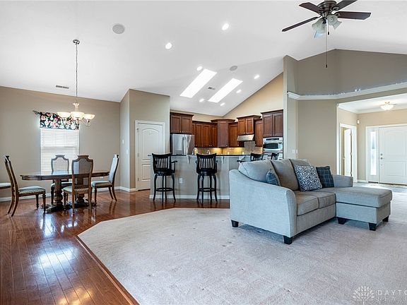 NOT TO BE MISSED! You won't want to miss out on this rare opportunity! A property in the Sugar Ridge Subdivision has come available!! This Miller-Valentine build, is Energy Star Rated. Desirable custom ranch with over 2050 sq feet, on a well manicured cul de sac lot, and conveniently located in Sugarcreek Township near schools, nature reserves, Cornerstone, Sugarcreek Plaza & more. With its inviting entry, Cathedral ceilings & a split floor plan that is sure to please. Three spacious bedrooms/owner's suite with ensuite private bath and walk in closets. The kitchen features an abundance of cabinetry, granite counter tops, stainless appliances & bar/breakfast area overlooking the Great room. This open living area makes perfect for everyday living or entertaining. Custom woodwork and built ins throughout make for many unique features. The HVAC (with whole house humidifier)replaced in 2022, Instant water heater, reverse osmosis water system. Private patio features an outdoor fireplace and retractable awning 2018. The oversized garage features "Nature Stone" type epoxy floor covering in 2021. Pride of Ownership through out.