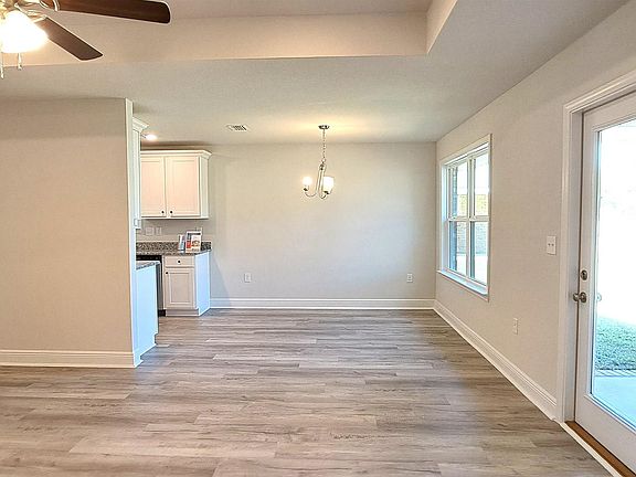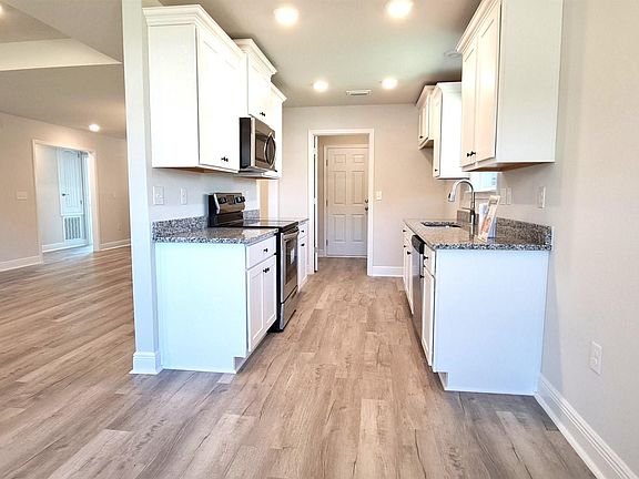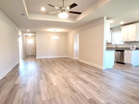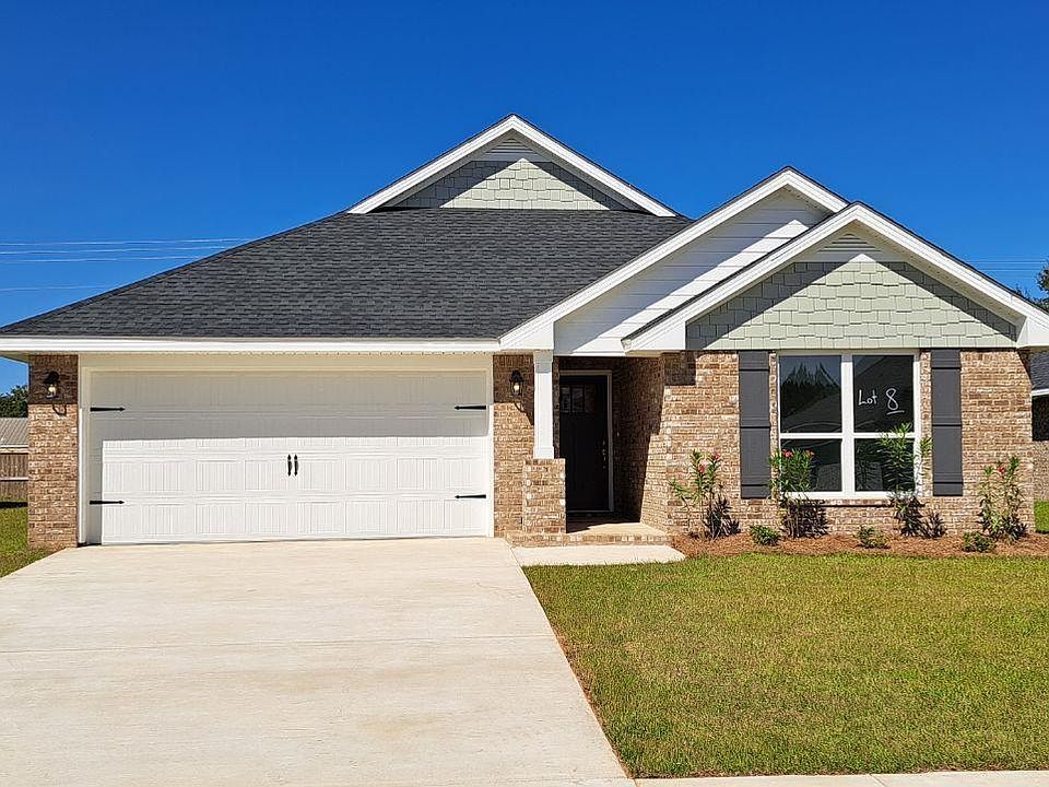 Move in Ready and 5.99% interest rate eligible. Beautiful Beaches are in your near future just 20 minutes away. This home is located in the center of Foley, with shopping, entertainment, and easy 2-minute access to the beach express or Hwy 59. Five minutes from amusement parks. Just minutes from the High school, Middle School, and Elementary Schools. This Four sided brick house has a split floor plan. It features 10 ft ceilings in a very open concept living room, dining, and kitchen with a lovely island and granite counter tops and stainless steel appliances with a large corner pantry. The Primary bedroom at the back of the house is spacious with an ensuite bathroom featuring double sinks, a separate shower and tub, and a huge walk-in closet. Two guest bedrooms are at the front of the house with their own bathroom and linen closet. Luxury vinyl plank flooring throughout with carpet in the bedrooms. The seller also provides Termite protection with a renewable bond. Premium hurricane fabric shields. Digital multimedia box.