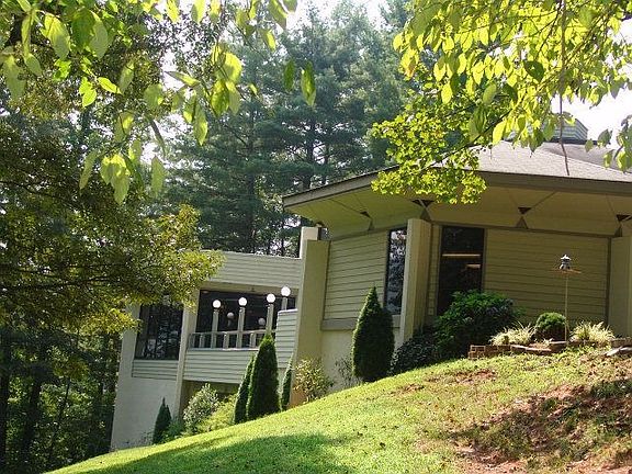 Gorgeous! This luxury home is built on a 33 and 66 degree angle philosophy, none of the rooms have square dimensions. Magnificent indoor pool and spa, two bonus rooms, built-in aquarium, new hardwood floors, tile baths and floors, granite countertops, two fireplaces, open loft with high ceilings, double-car garage, two decks, and a gated drive! Double Oven Gourmet Kitchen is fully equipped for the discerning chef! No words can describe the elegance of this exclusive Franklin NC residence!