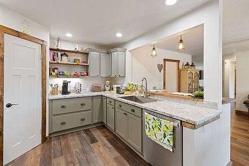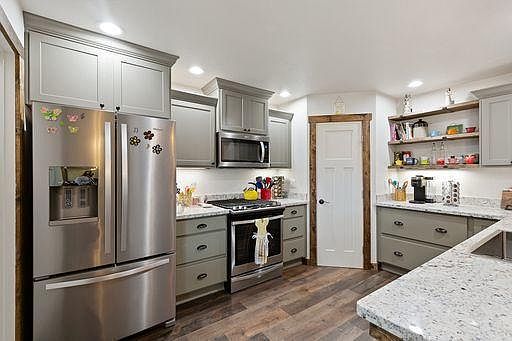 You are home! This newly updated ranch style home has 3 bedroom, 2 bathrooms in a spacious 1700sq ft. Enter into the large living room with luxury vinyl laminate through out most of home. electric stove on brick hearth and picture window. Family room is open to eating area with reclaimed shiplap walls. You are going to love the Beautiful kitchen with pantry, indirect lighting under cabinets, a rustic wood eating bar makes this a kitchen everyone will gather at. You controle the lights with dimmer switches in most rooms and hallway! Guest bedrooms and bathroom lead you to large Master bedroom and bath with great space. From dining area slider door opens to covered deck perfect for entertaining! Fenced back yard and front yard. Two car garage with Electric vehicle charging station. This home is a must tour! Short distance to Old Town shops and restaurants! Schedule your showing today!