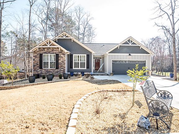 Lake front home like new! Not even 2 years old. Gorgeous lake views from every room. Hardwood floors throughout. Partially finished walk out basement with wet bar and more room to expand. Master suite on the main level.Year round enjoyment on your patio, upper deck, or screen porch. Cozy fireplace and exposed beams are the focal point of the great room. This corner lot is almost a 1/2 acre. Property abuts the Fairfield Plantation green space. Lake access from this lot allowed for kayaks, paddle boards, canoes, Jon boat, etc. No dock will be permitted.